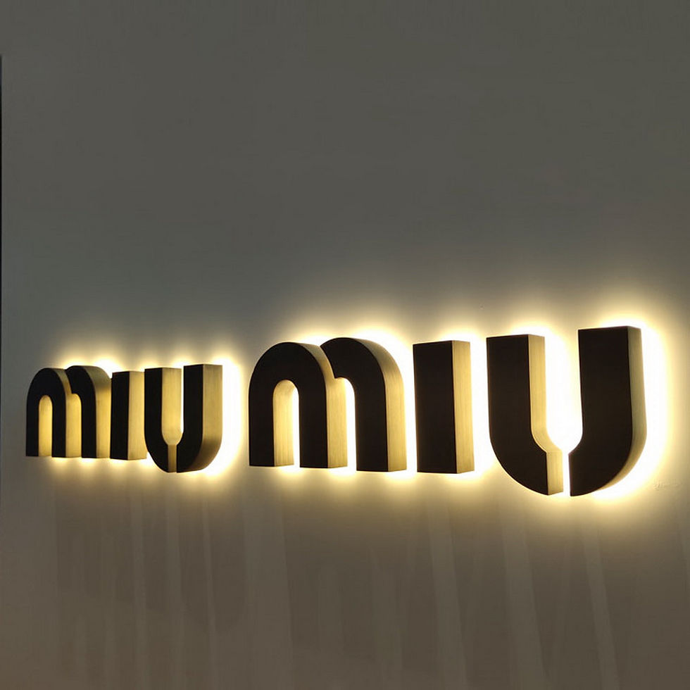 black mirror finishing warm light Stainless steel reverse-lit signs with acrylic